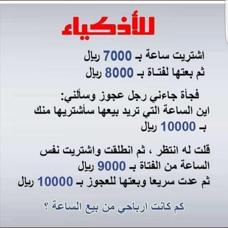 ألغاز رياضيات للاذكياء مع الحل