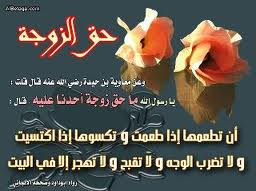 - أوصى النبي عليه الصلاة والسلام بالنساء خيراً، ونهى عن ظلمهن والإساء إليهن أو التعدي عليهن، وقد بين النبي الكريم حقوق الزوجات على أزواجهن في حديث جامع حينما قال عليه الصلاة والسلام لمن سأله عن حق زوجته عليه: (تطعمها إذا طعمت، وتكسوها إذا اكتسيت، ولا تضرب الوجه، ولا تقبح ولا تهجر إلا في البيت).