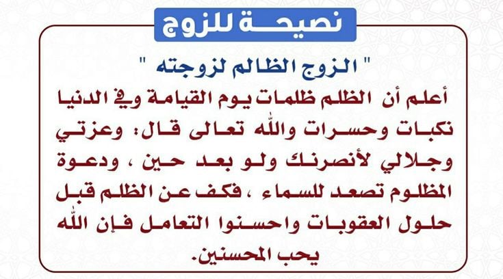 الزواج هو علاقة مقدسة إذ يجب معاملة حسنة و عدم ظلمها وفي هذه الفقرة إليكم حكم ظلم الزوج لزوجته بسبب أهله.