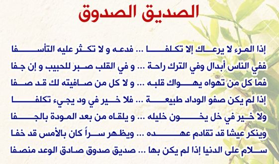 يمكن التعرف على شعر عن الصديق الغالي ، وذلك على النحو التالي: