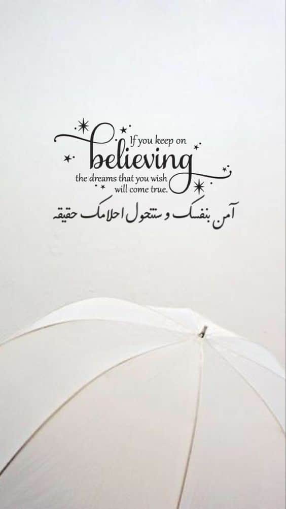 - الترجمة: لا عزّ إلّا بالإسلام، ولا قوّة إلّا قوّة الإيمان، ولا حول ولا قوّة إلّا بالله، كونوا بخير أصدقائي.