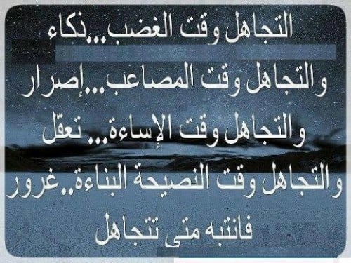 - التجاهل وقت الغضب ذكاء ووقت المصاعب أصرار ووقت الأساءة عقل ووقت النصيحة البنائة غرور .