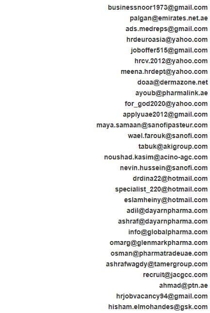 إليكم في صور ايميلات شركات الأدوية في الامارات: