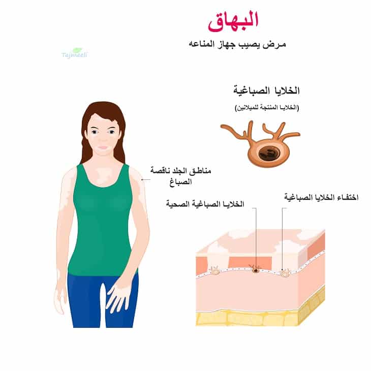 يُؤثر البهاق على البشرة في أي جزء من أجزاء جسم الإنسان، ومن الممكن ظهور هذه البقع على فروة الرأس والفم، يحدث مرض البهاق نتيجة وجود خلل في الخلايا الصبغية التي تنتج الميلانين.