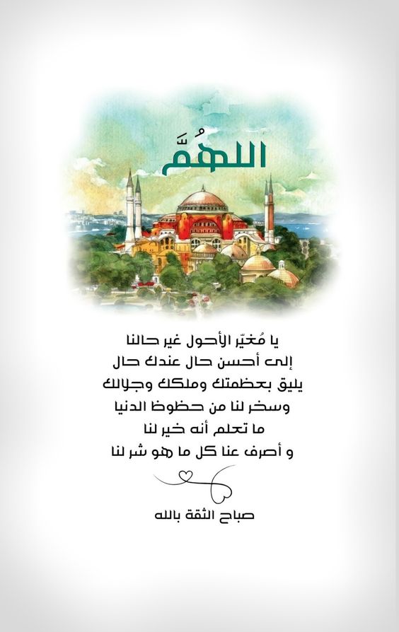 إليكم دعاء اللهم يا مغيّر الأحوال غيّر حالنا إلى أحسن حال، و سخر لنا من حظوظ الدنيا ما تعلم أنه خير لنا و اصرف عنا كل ما هو شر لنا إنك على كل شيءٍ قدير في صور:
