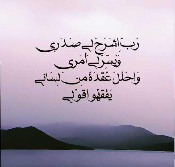 - رَبِّ اشْرَحْ لِي صَدْرِي وَيَسِّرْ لِي أَمْرِي وَاحْلُلْ عُقْدَةً مِّن لِّسَانِي يَفْقَهُوا قَوْلِي