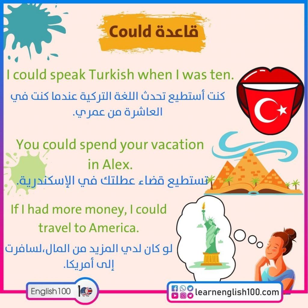أمثلة على could في هذه الفقرة اليكم اسهل أمثلة على could لكي تتمكنو من فهم هذا الدرس بشكل جيد للمزيد من المعلومات تابعو معنا .