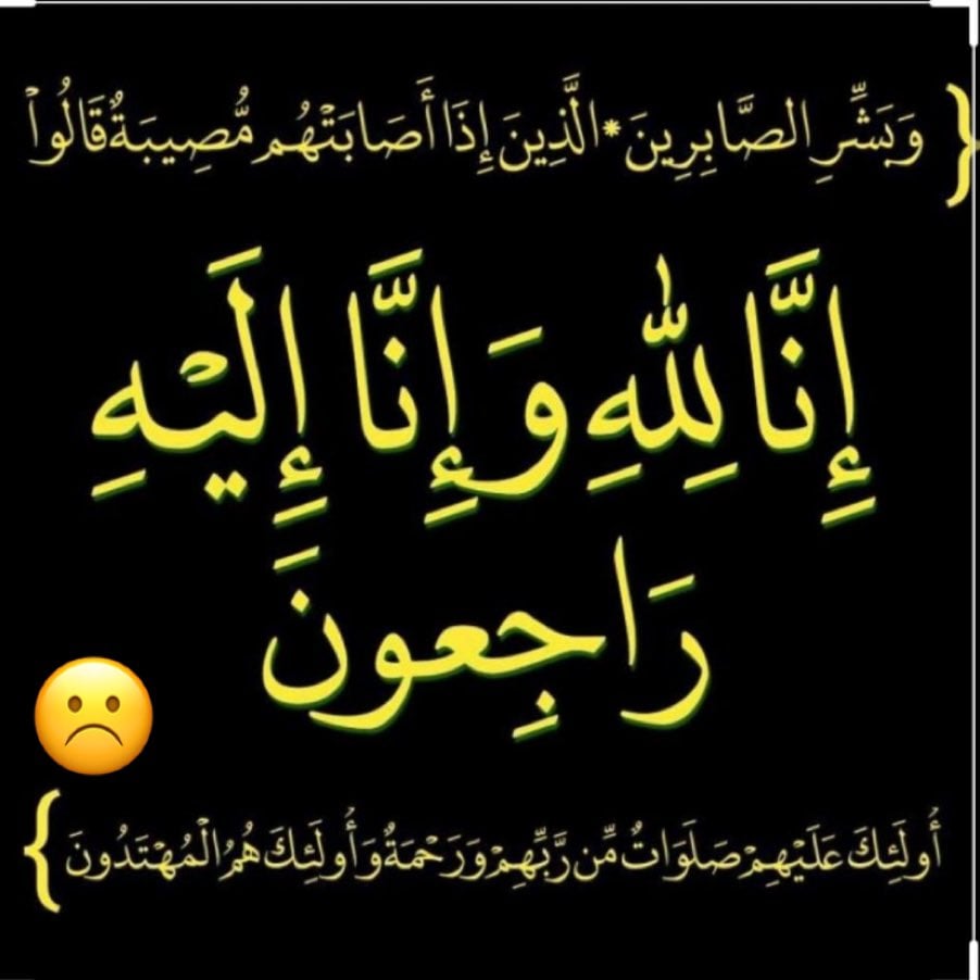 - لا حولة ولا قوة إلا بالله العلي العظيم الله يصبر أهله وعظم الله أجركم يا أهلنا لله ما أعطى ولله ما أخذ وكل شيء عنده بمقدار.