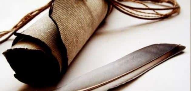 - بأنَّها كانت تُكتَب على رقاع الجلد وتُعلَّق في عمود الخيمة.