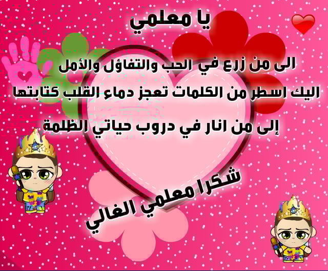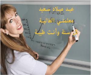 - “من علمني حرفاً صرت له عبداً” معلمتي الغالية نهنئكِ اليوم بعيد ميلادك ونحتفل بكِ فأنتِ لنا ملكة كل عام ، وأنتِ أفضل معلمة مرت علينا.