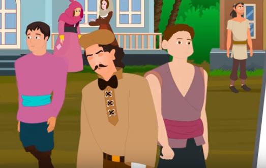 وذات يوم أتى رجل غريب إلى القرية ، وسمع بقصة ألبرت والقلم المسحور ، فذهب إلى بيت ألبرت وانتظره خلف شجرة قريبة من المنزل .