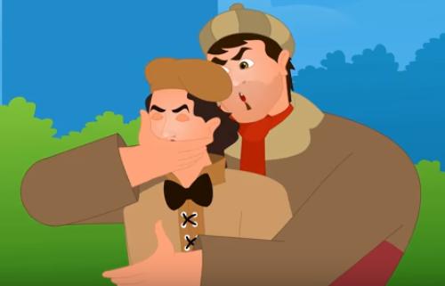 فخاف الغريب ورمى القلم والورقة وحاول الهرب ، ففكر ألبرت سريعًا وأخد القلم ورسم قفص حديدي ، ولما ظهر القفص قام بجذب اللص الغريب ووضعه داخل القفص ثم استدعى الشرطة .