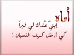 - ربي عطّر قبر أمي برائحة الجنه اللهم أرحم تلك النفس الطيبة التي فارقت الدنيا وأنتقلت إلى جوارك الله اجعلها في الفردوس الأعلى من الجنة.