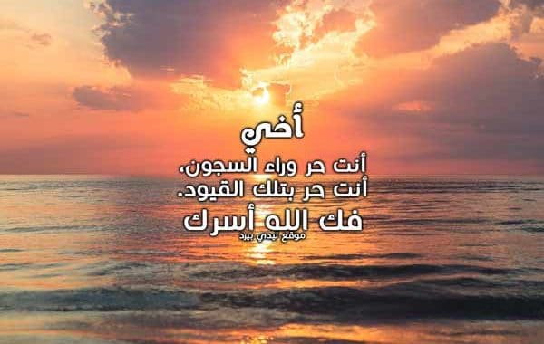 - اللهم هوّن عتمة السجن على السجناء، ربي أنت أعلم بنفسي مني وأنت أعلم بمكانة ( اسم السجين ) عندي اللهم فك أسره، عاجلاً غير آجل يا رب العالمين".