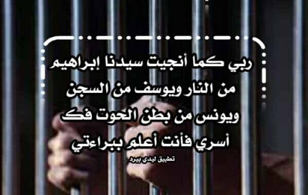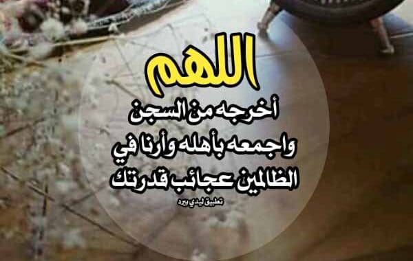 - اللهم اكتب له الفرج العاجل وأسعد فلذات كبده بخروجه سالما معافى اللهم نفس كربته و لم شمله بأهله عاجلا غير اجل اللهم إن “الاسم” مسه الضر وأنت أرحم الراحمين اللهم اكشف الضر عنه و أخرجه من براثن السجن اللهم إنه مغلوب فانتصر له يا رب.