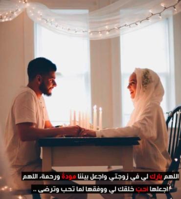 - اللهم إني أسألك أن تجعلني دائماً نوراً في عين زوجتي، وأن ترزقني حبها، وأن تعصم قلبها من الآثام والذنوب.