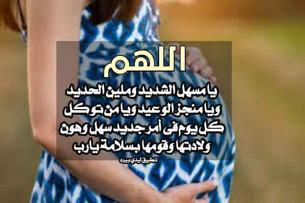 - اللهم قوي زوجتي على حملها، و ارفق بها في تعبها، و خفف اللهم عنها ألمها و جهدها.