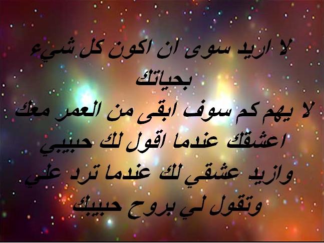 - عطشان والدنيا مطر والعين لا تشبع من نظر مشتاق يا اغلى البشر و و احبك يا احلى من القمر.
