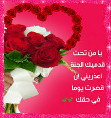- أمي لا تؤم القلوب إلا إليك ولا تلين الصخور إلا لحنانك أنت الحب والجنة تحت قدميك أحبك أمي.