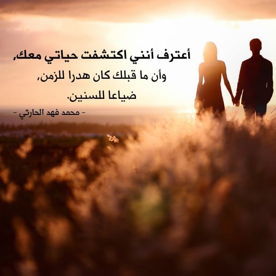 لو كنت أملك أن أهديك عيني لوضعتها بين يديك.. لو كنت أملك أن أهديك قلبي لنزعته من صدري وقدمته إليك.. لو كنت أملك أن أهديك عمري لسجّلت أيامي باسمك لكني لا أملك سوى الكلمات الكثيرة من صادق التعبيرات فلتكن هي هديتي إليك.حبيبي سكنت روحي وتربعت على عرش قلبي.. حتى تفارق روحي مثواها.يقولون خلف كل رجل عظيم امرأة، وأقول بجانب كل مبدع وناجح امرأة، فهيئي لي الطريق، وكوني لي خير صديق ورفيق بك أسمو.زوجتي سبب سعادتي زوجتي سبب هنائي زوجتي سبب توفيقي زوجتي سبب اطمئناني زوجتي سبب دفئي زوجتي سبب أماني زوجتي سبب ضحكتي زوجتي سبب اعتزازي زوجتي سبب فخري زوجتي أساس حياتي زوجتي أساس مستقبلي زوجتي اساس عمري زوجتي أحبك.من يقول إنّي أحبّك ما عرف قيمة غلاك، أنتي فوق الحب كلّه انتي في عيني ملاك لا تلومي الّلي يحبّك باع عمره واشتراكي، ذنبه الأوّل يحبّك، وذنبه الثّاني غلاكِ .قـــد أشرقت شمسك في سماء حياتي . . وكنتي نورا قد غطى على أحزاني وبدلها أفراح . . لقد أصبحت الحياة جميلة بوجودكِ معي . . بابتسامتكِ التي ترتسم على محياكِ الجميل . . كم هي رائعة عيناكِ التي أرى بهما الحياة . . حفظك اللـــه لـي ومتعك بالصحة والعافية . . . ودمتي لــــي .