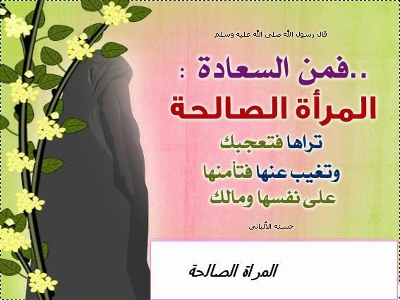 يــا مــن يـريـــد زوجـــة صــالـحــة :-: دعني أعطيك صفاتها في معانٍ واضحةتكــون لـك علـى درب الحيـاة صاحبة :-: أميـنـــة على مالــك و لبيتـك حـافظــةإذا نظرت إليهــا فابتسامتهــا ساحرة :-: لكــلّ هــمّ وغــمّ بــك لهمـــا شــافيةإذا سألتني عن أخلاقها فهي طاهرة :-: ذاكـــرة، لنعـــم الله تعالـــى شـــاكــــرةبحجـابهـــا جميلـــة وبحيائهـــا نبيلــة :-: إذا سألتنــي عنـها قـلـت صادقة عفيفةإذا أصـابتـك محنة كانت لك مواسيـة :-: فهـذا قضــاء و قـدر اللـّـه بــه راضيـةإذا أمــرتـهــا فهــي لـــك طـــائــعــــة :-: وإذا ذكرتك في مجلس كانت لك مادحـةإذا مــرضــت أصبحــت وأمسـت باكية :-: في دجى الليــالي تدعــو لك بالعافيـــةإذا إستشـرتهــا كـانــت لـك ناصحـة :-: وكيــف لا وهـــي الزوجــة الصــالحــة