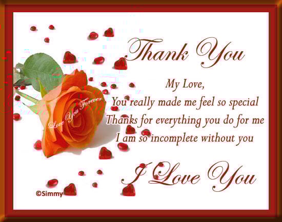 - شكرا حبيبتي على الهدية و الهدية الحقيقة هي أنكي موجودة دائما في القلبي، فشكرا كثيرا لك على كل ما قدمت من أشياء مبهجة وتذكارات ثمينة مهما قلت من عبارات لوصف مشاعر الفرح في قلبي، فلن أستطيع أن أصف ما أضافته هديتك إلى نفسي.