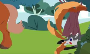 ولكن الثعلب الماكر شعر أن هناك خطبا ما وأن هذا الحيوان ليس غبيا بالمرة. فقال: