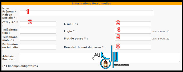 - CIN / RC 2*تضعوا في هذه الخانة رقم بطاقة التعريف الوطنية.