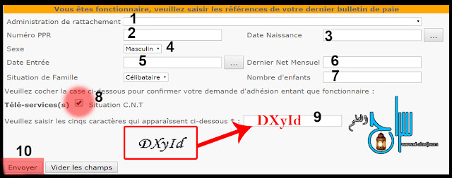 - المرجو الانتباه جيدا وأنت تملأ استمارة التسجيل مثل وضع علامة داخل مربع أو اختيار من متعدد(عازب، متزوج) بالإضافة إلى الدقة في كتابة الراتب الشهري خصوصا إذا كنت مستفيدا من قروض