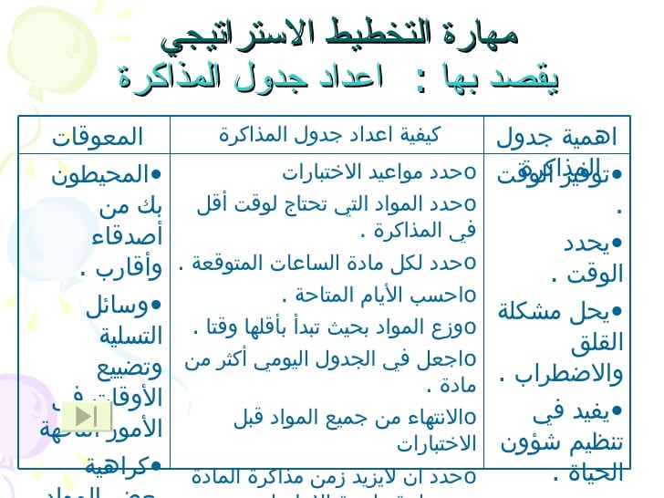 مطوية عن تنظيم الوقت للمذاكرة