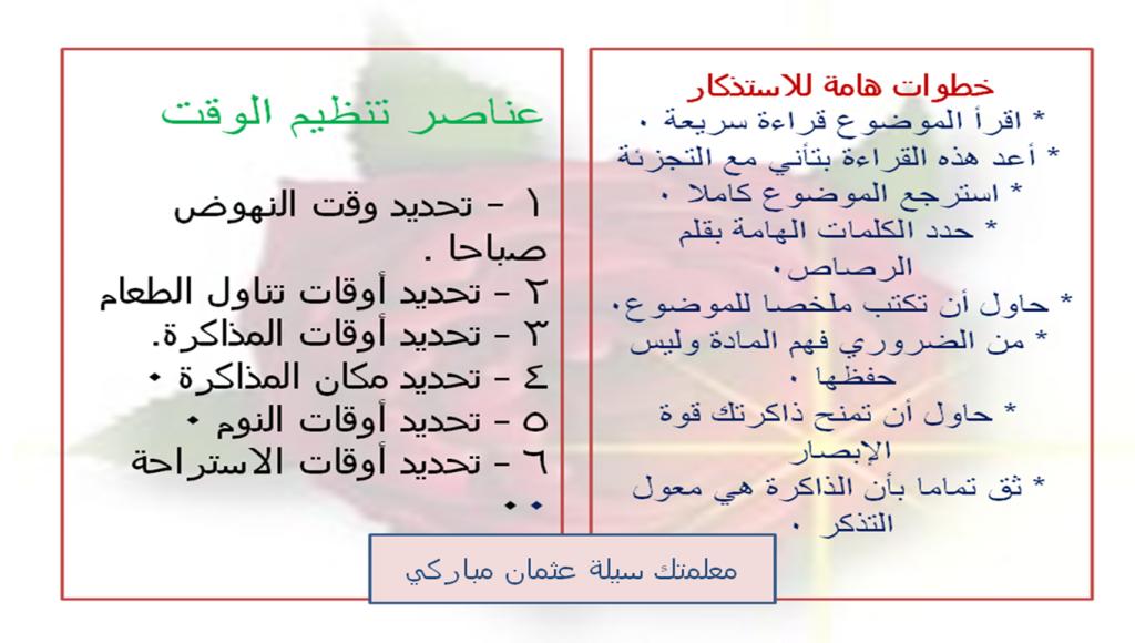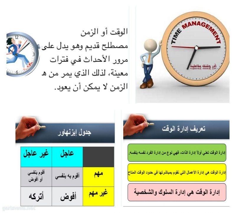 في إطار حرص المدرسة على مستويات الطلبة التحصيلية والعمل على تحسين أداء الطلبة وتنظيم الوقت ليتسنى للطالب المذاكرة في الوقت المناسب من خلال مساعدته على تنظيم وقته وذلك من خلال مطويات تعنى بتنظيم وقت الطالب وارشاده إلى طريقة المذاكرة للمواد الدراسية ومن هذه المطويات :