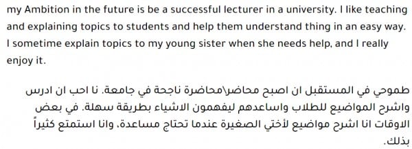 - لا تكتب الموضوع باللغة العربية ثم تحاول ترجمته للإنجليزية ففضلا عن الصعوبات التي سوف تقابلك في ترجمة بعض الألفاظ، سوف تكون الجمل ركيكة وتركيبها غريب على الإنجليزية. حاول أن تفكر باللغة التي سوف تكتب بها الموضوع أي بالإنجليزية. وأكتب الأفكار التي ترد على خاطرك باللغة الانجليزية.